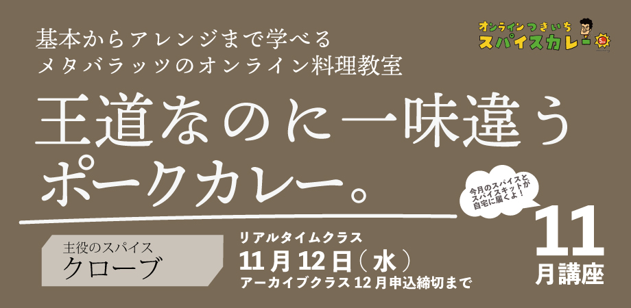 2025/11/12 | 【スパイス料理を学ぶ】バラッツのオンライン料理教室 つきいちスパイスカレー#11月の会(11/12) |