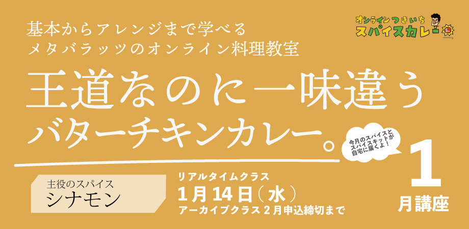 | 2026/01/01 | 【スパイス料理を学ぶ】バラッツのオンライン料理教室 つきいちスパイスカレー#1月の会(1/14) |